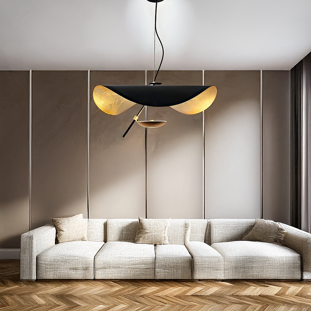Stainless steel & Iron & alu made pendant lamp in external matte black & interior golden leaf powder coated ....