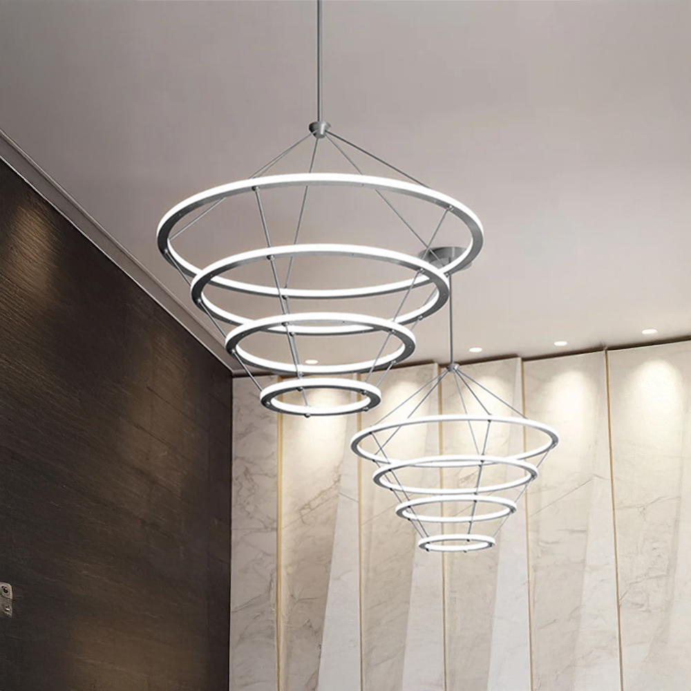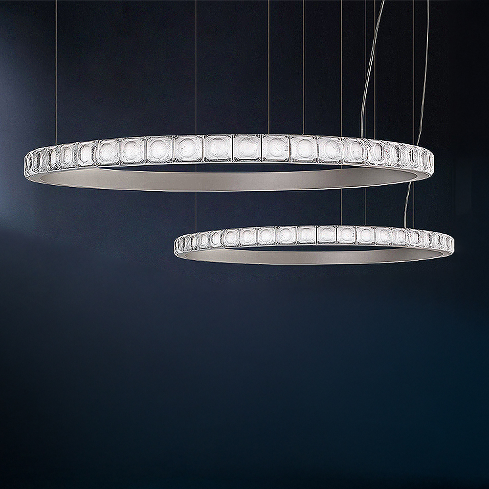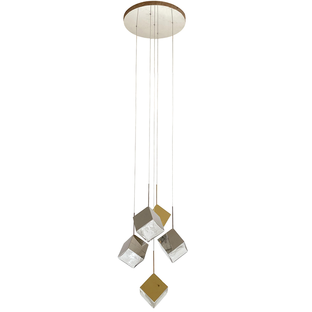Stainless steel made combined pendant lamps in plated polished nickel & brass finished housings with square textured....