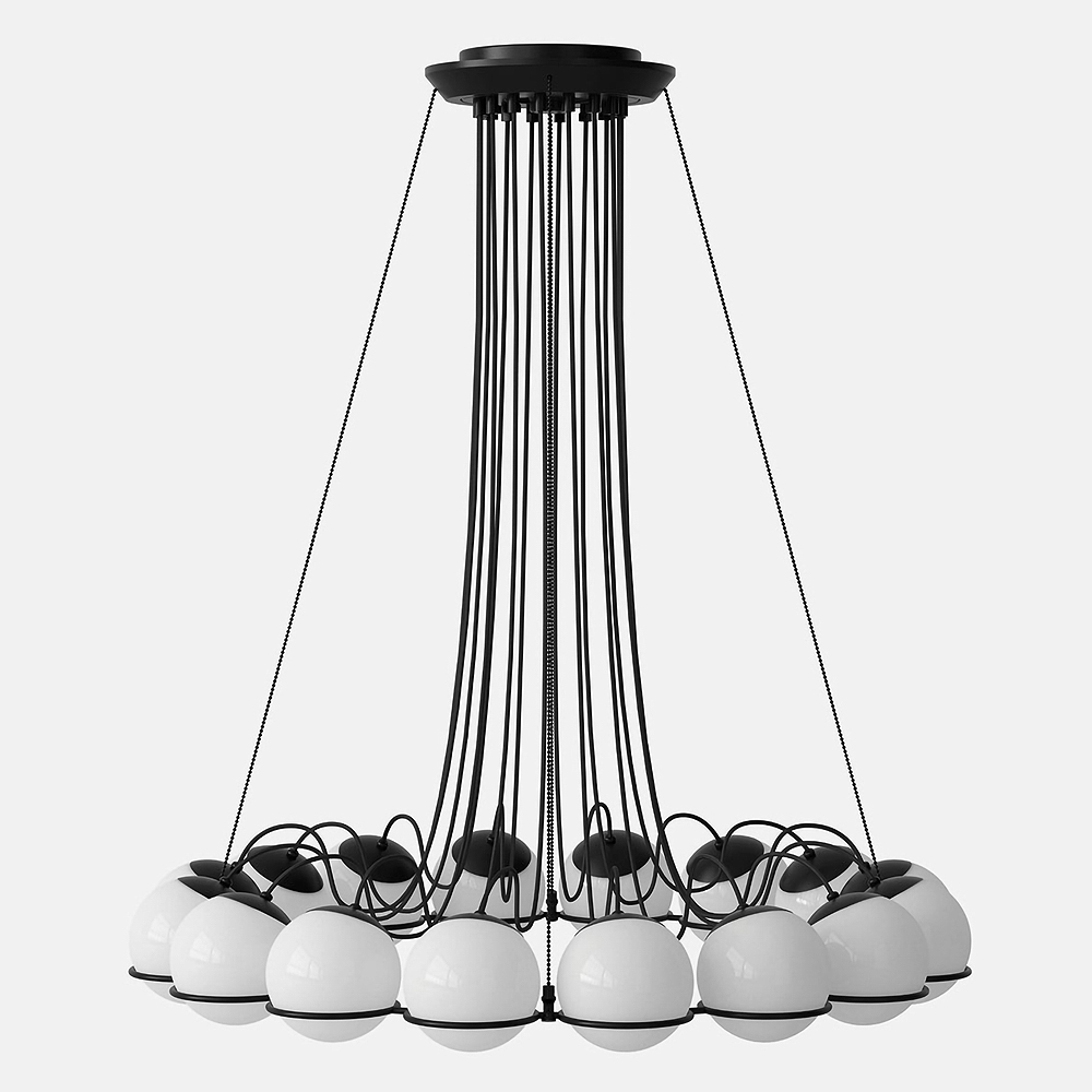 Stainless steel & alu made Osram LED chandelier in white coated finished canopy housing with mixed of 12pcs black + ....