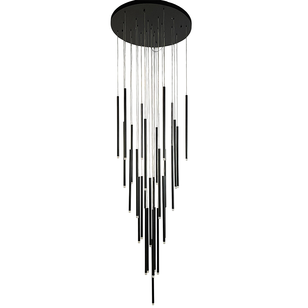 Stainless steel & Alu made Osram LED chandelier in matte black coated finished canopy & drops with frosted white....