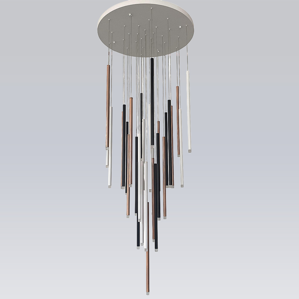Stainless steel & alu made Osram LED chandelier in white coated finished canopy housing with mixed of 10pcs black + ....