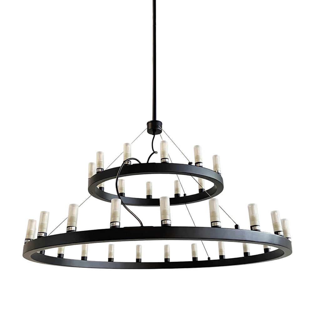 Stainless steel & Iron made chandelier in matte black powder coated finished / Excluded light source / Adjustable he....