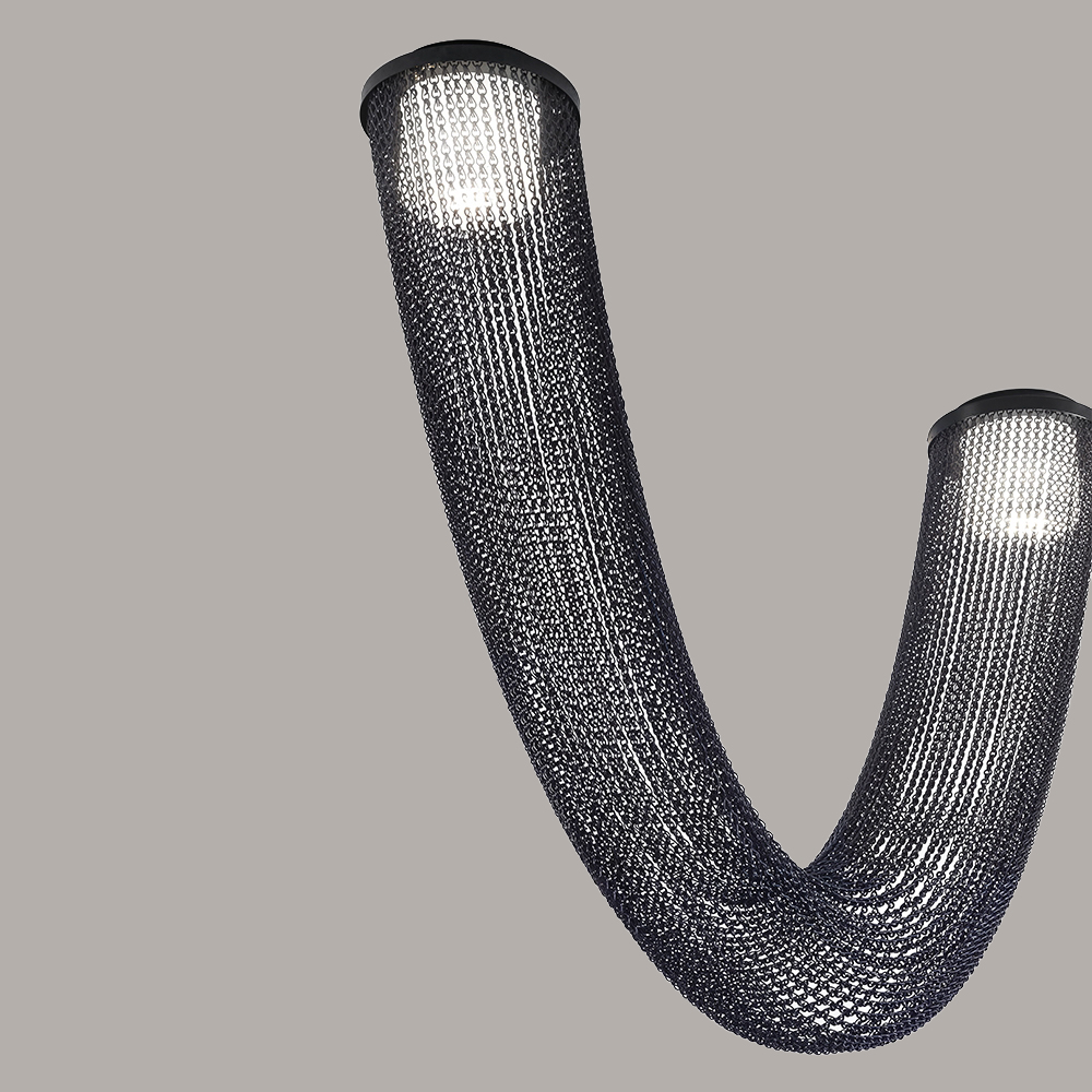 Stainless steel & Alu made ceiling mounted Osram LED pendant lamp in matte black coated finished canopy with frosted white glass diffusers & satin black alu chains feature / Single type / Triac dimming