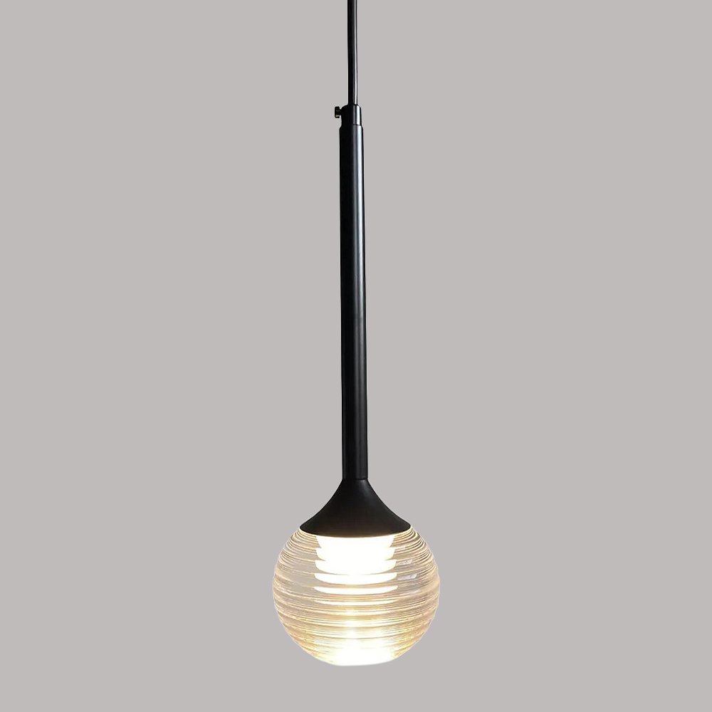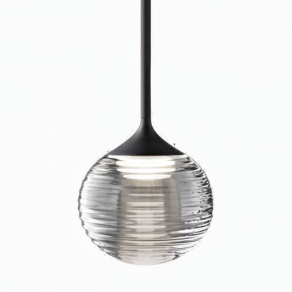 Stainless steel made Osram LED pendant lamp in matte black powder coated finished housing with inner white acrylic diffuser & outer transparent textured glass shade / Adjustable height / None dimming