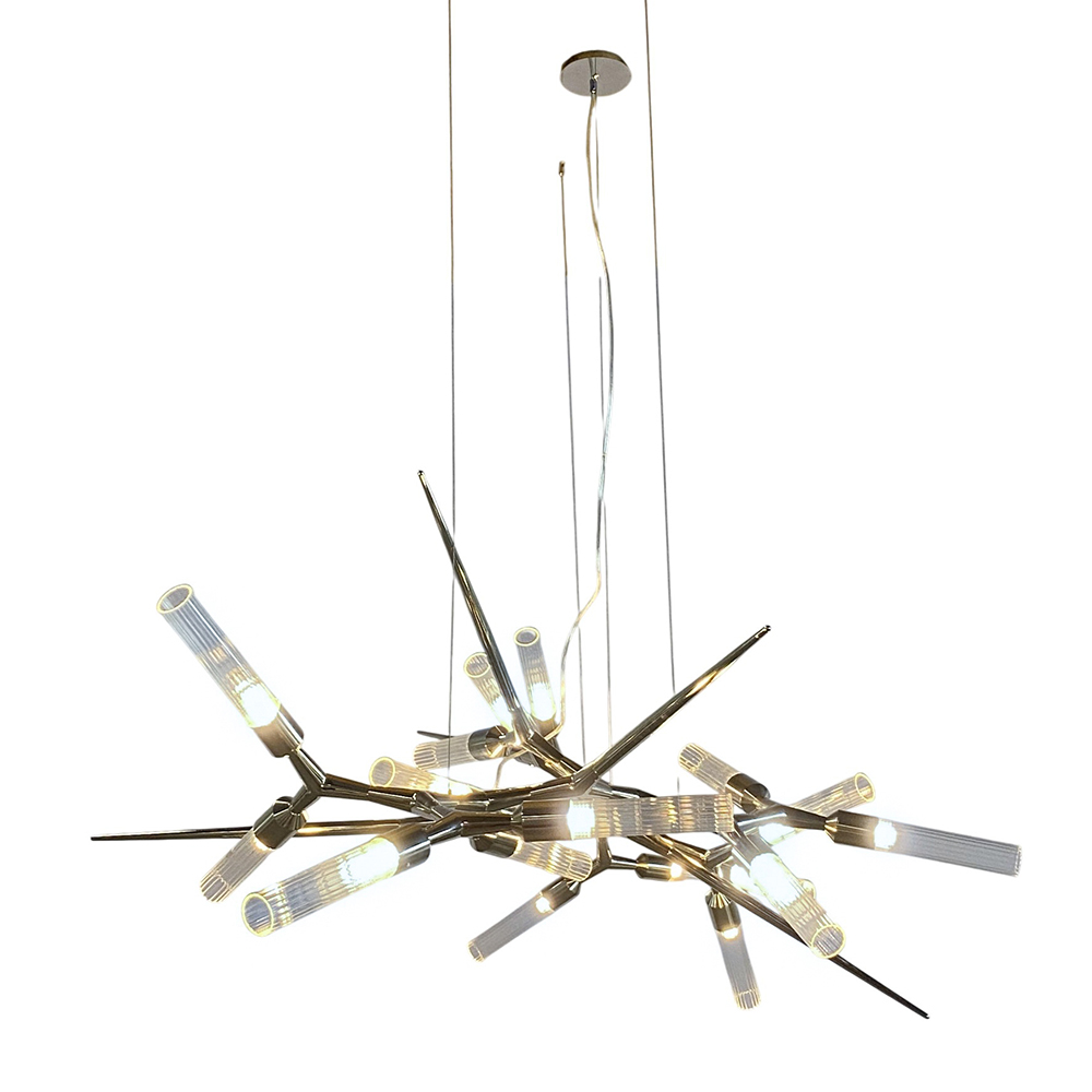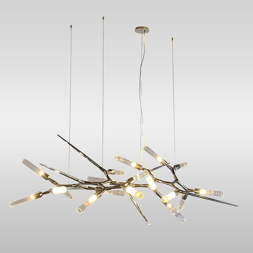 Iron made pendant lamp in plated polished nickel finished with transparent glass ripple shades / Adjustable height