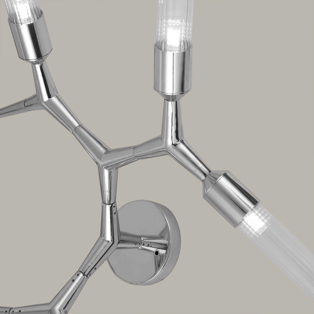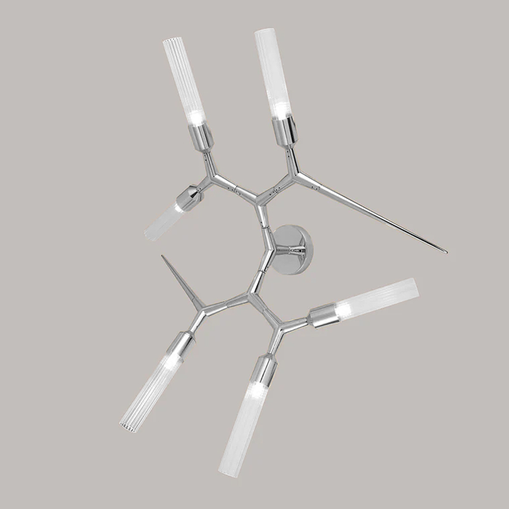 Iron made wall sconce in plated polished nickel finished with transparent ripple glass shades / Adjustable angle