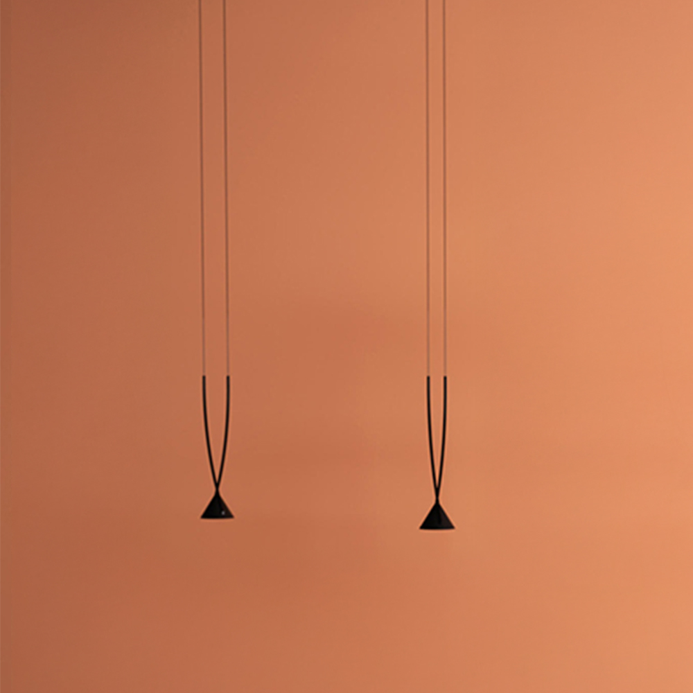Iron & Alu made Osram LED pendant lamp in matte black powder coated finished with white acrylic diffuser / Single one / Adjustable height / None dimming
