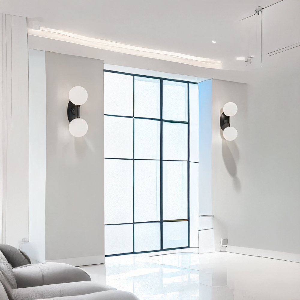 Iron made wall sconce in glossy black powder coated finished with white glass shades & stainless steel made canopy.....