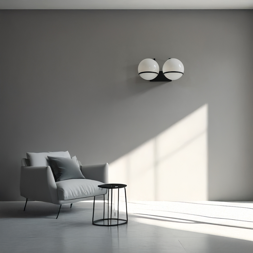 Stainless steel made double wall sconce in matte black powder coated finished with iron made support housings & opal....