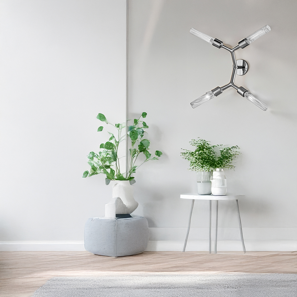 Iron made wall sconce in plated polished nickel finished with transparent ripple glass shades / Adjustable angle....